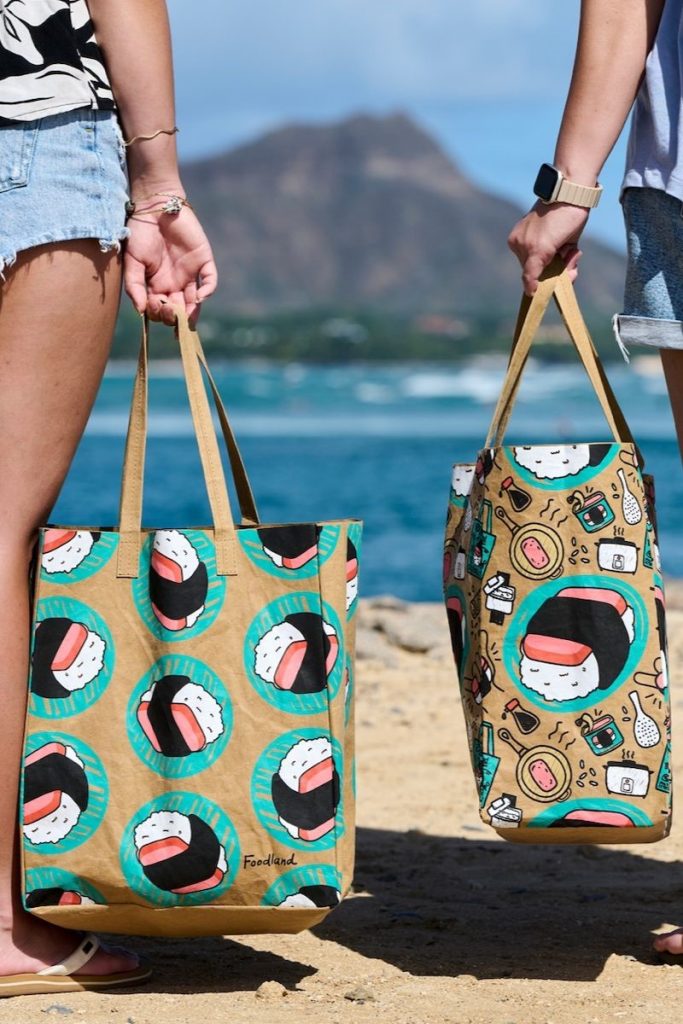 フードランドのマーケティング部長を務めるトリシア・ビーマン氏は、夏のヒット商品に関して次のようにコメントしました。「数あるフードランドのエコバッグデザインの中でもロングセラーのかわいいスパムむすび柄をアレンジして、新素材の“洗える紙袋”や、キッチンタオル、鍋つかみやしゃもじ、まな板まで、さまざまなキッチン用品をデザインしました。また、バードオブパラダイスの花柄や、カラフルなフルーツ柄の保冷ボトルやポーチなど、ここでしか買えないハワイらしいデザインの商品も登場しています」