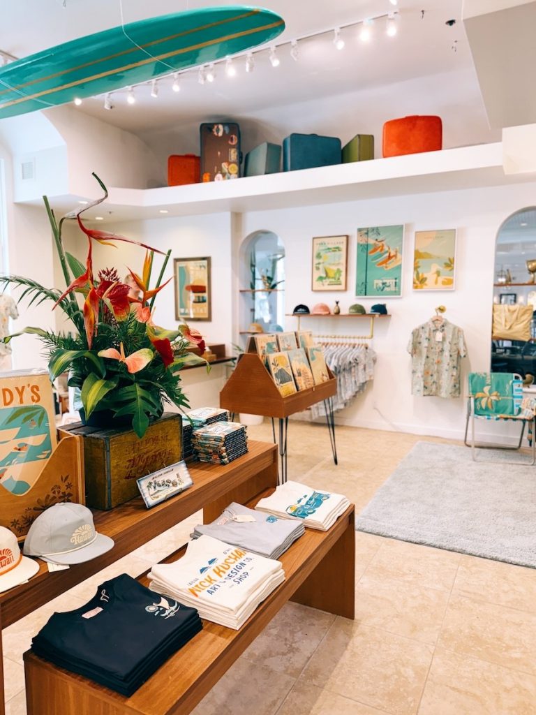 オアフ島を拠点とするアーティスト、ニック・カッチャー氏は、ハワイ諸島の風景をヴィンテージ調のスタイルで描く作品で知られています。彼の創作の情熱は、デジタルイラストレーション、シルクスクリーンプリント、アクリルペイントと多岐に渡ります。カッチャー氏はインスピレーションを求めて島々を巡り、サーフィンをしたりハイキングしたりしながら創作のアイディアを生み出していると言います。スタジオではスケッチや写真をもとに、アクリルペイントとデジタルイラストを融合させた独自のアートを創作しています。ギャラリーでは、アート作品のほか、T シャツ、キャップ、アクセサリーなど、ハワイアンスピリットとアイランドライフスタイルを表現した商品が展開しています。