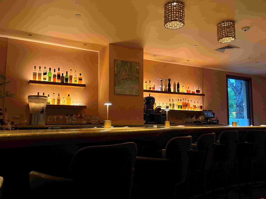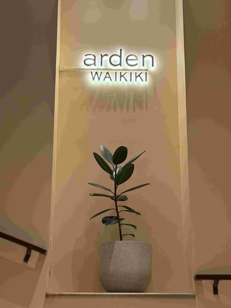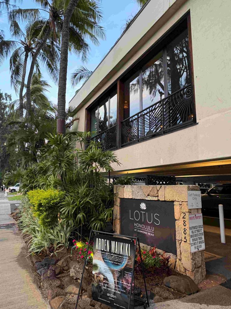カピオラニ公園に向かって、カイマナビーチの静かな木陰道を歩いていくと、ホノルル水族館が見えてきたら目的の「アーデン・ワイキキ」はもうすぐです。ロータス・ホノルルという小さなホテルの2階に、今多くのグルメたちに注目されているレストランダイニングがあります。大きなバーカウンターを抜けると、広いダイニングが贅沢な席数で展開します。カナダ出身のマコト・オノシェフが腕を振るいます。