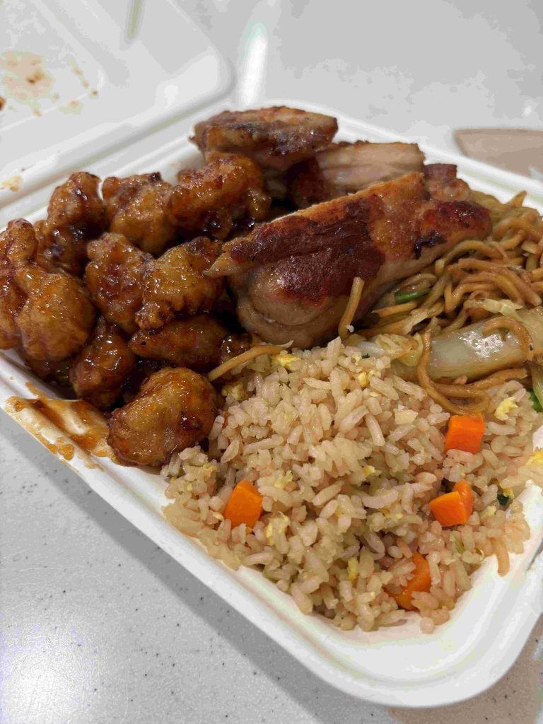 我々編集部の定番テイクアウトは「PANDA EXPRESS」、いろいろな場所で目にすると思いますが、味もボリュームも抜群です。プレート1つあれば、二人で十分の量ですから節約にもなります。注文は簡単です。一番お勧めなのはプレートで、主食(炒飯か焼きそば)を決めて、おかずを2種類選べます。このお店の一番人気は“オレンジチキン”ですが、“照り焼きチキン”も捨てがたいです。野菜炒めや春巻きなどいろいろありますので、お好きなものを指させばOKです。2種類が多い方は、ボウルを選べば主食+1種類チョイスなります。ちなみに写真は、焼きそばと炒飯のハーフ&ハーフという通な頼み方をした結果です。